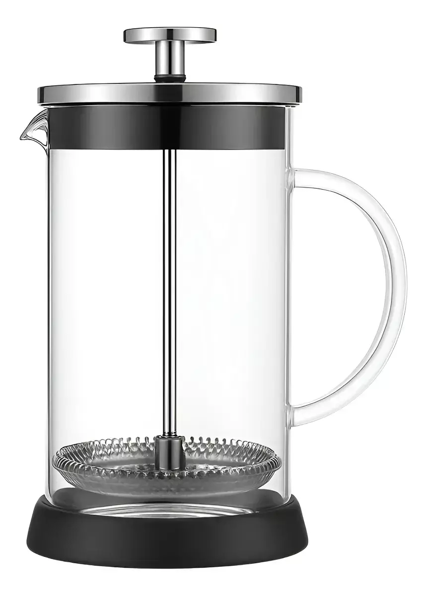 La cafetera incluye un filtro de malla fina que permite una extracción limpia, conservando los aceites naturales del café para un sabor más intenso. Su asa de vidrio es cómoda y segura al tacto, y la base antideslizante mejora la estabilidad durante el uso.