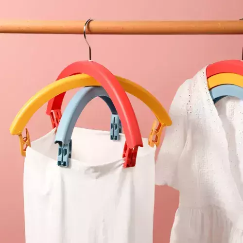 Organizá tu ropa con estilo y practicidad con esta original percha de diseño arcoíris. Gracias a su sistema triple con ganchos incorporados, podés colgar varias prendas en un mismo espacio, ahorrando lugar en tu placard o tender.