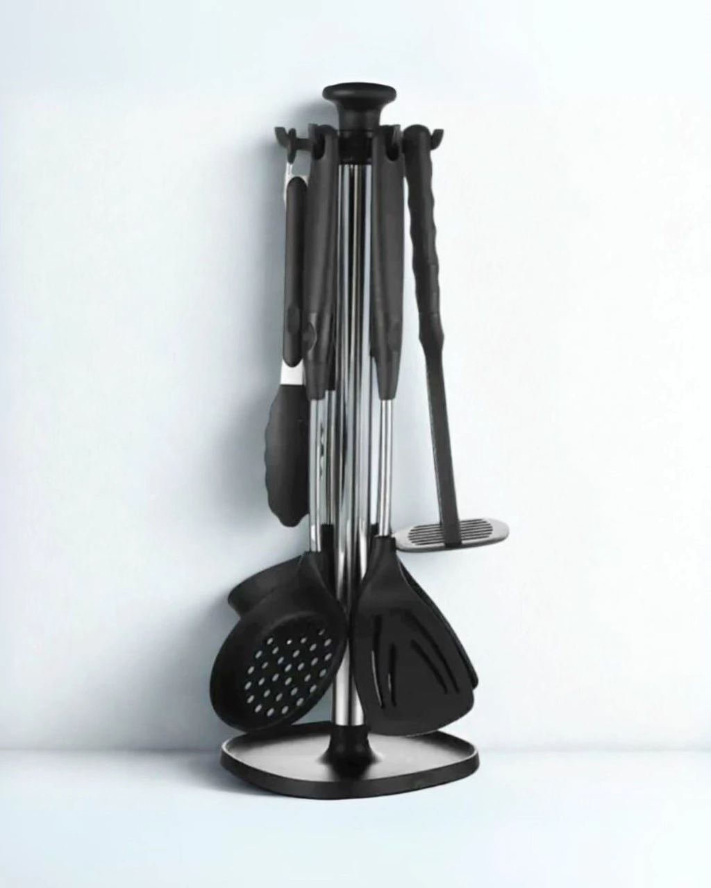 Este práctico set incluye los utensilios esenciales para cocinar todos los días, organizados en una base súper cómoda y elegante. Ideal para quienes buscan practicidad sin perder estética.